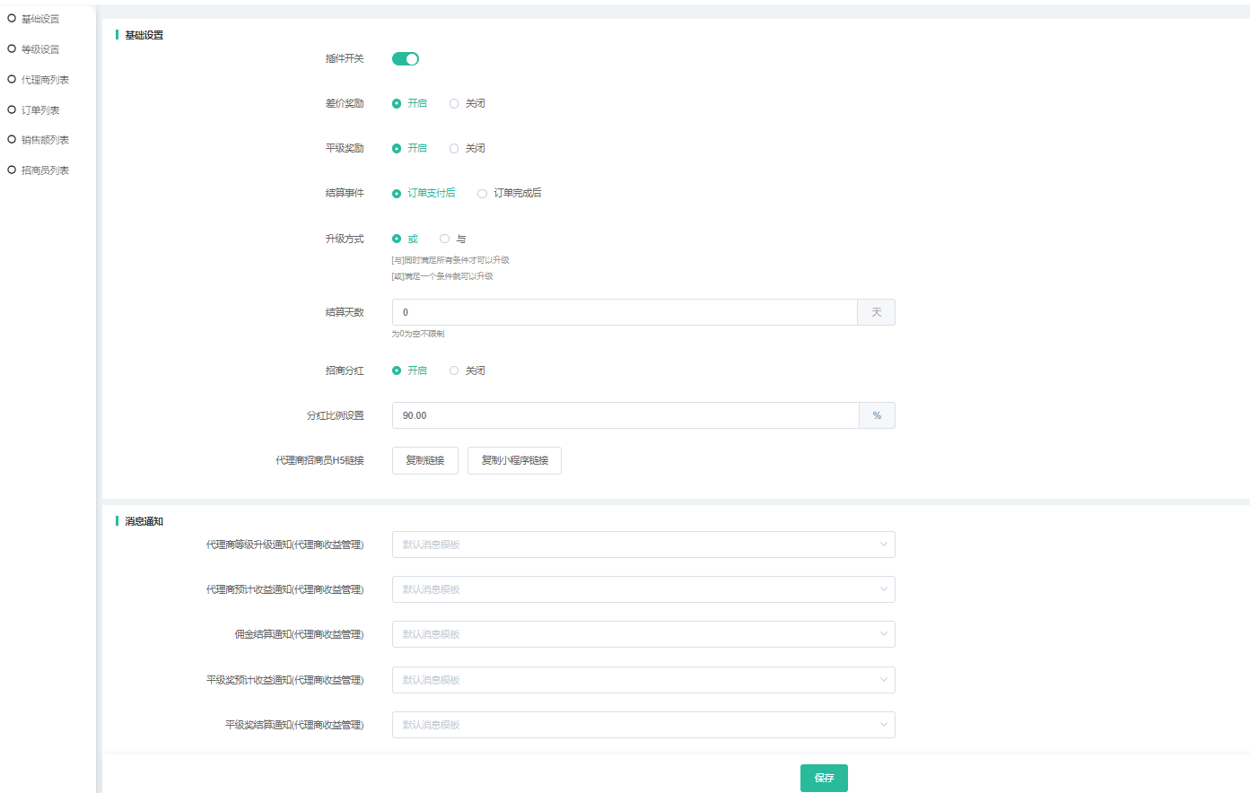 3)平级奖励开关:平级奖励按钮不开启,即使等级设置或者商品编辑里面有开启平级奖励按钮,也不会产生平级奖